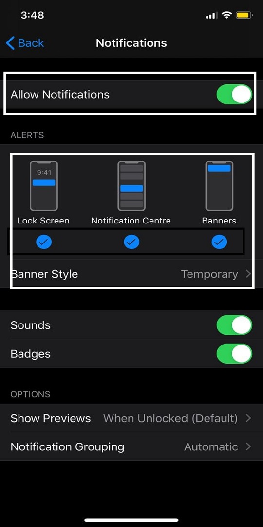 নোটিফিকেশন্স অপশন সিলেক্ট করুন