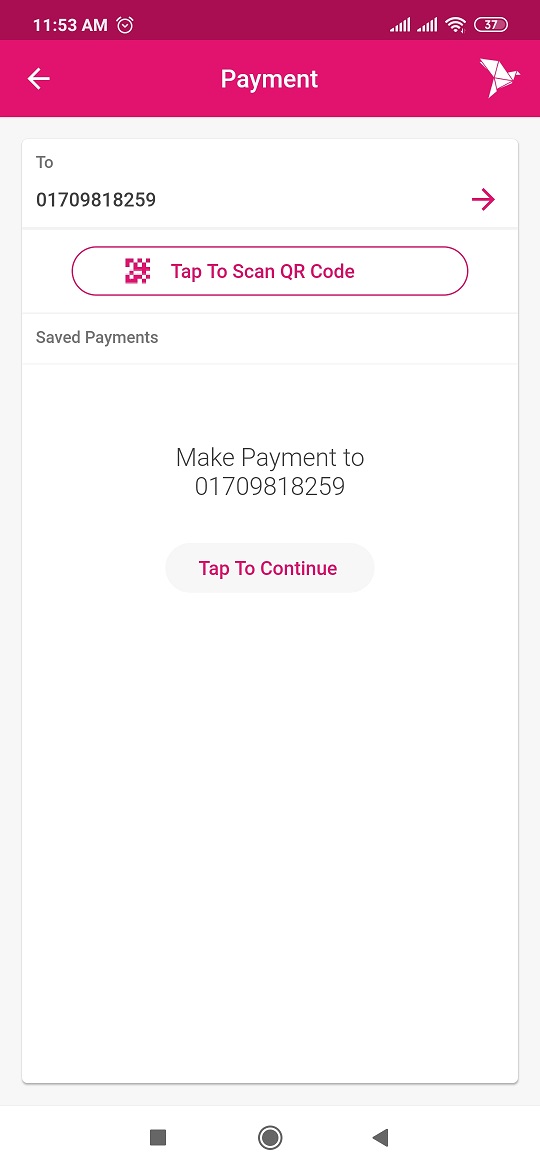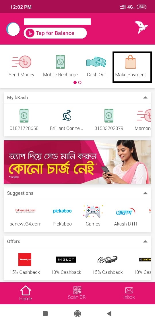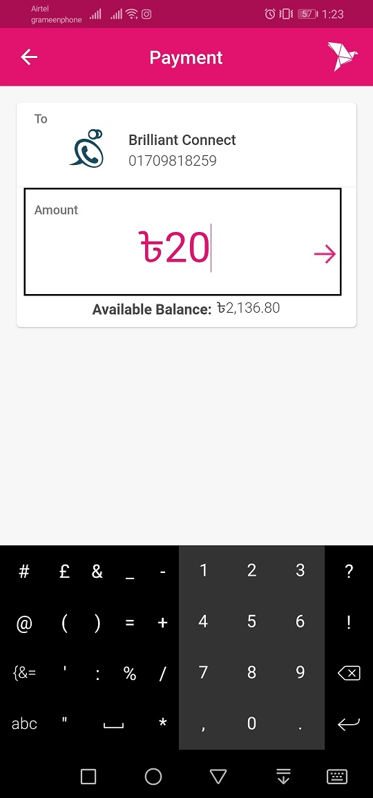বিকাশ অ্যাপ থেকে পেমেন্ট