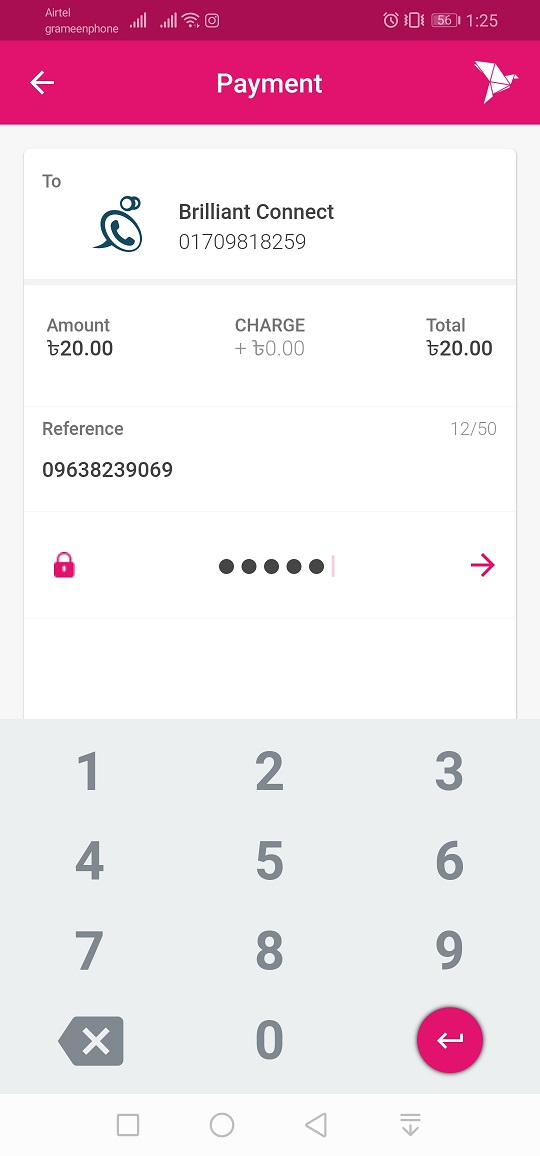 আপনার বিকাশ পিন টাইপ করে কনফার্ম করুন