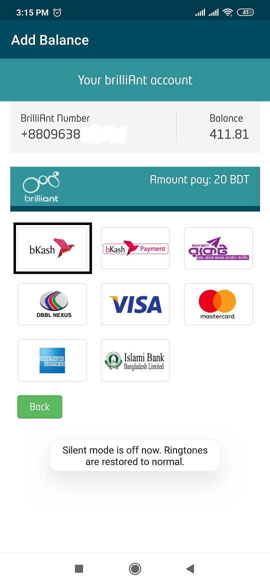 bKash সিলেক্ট করুন