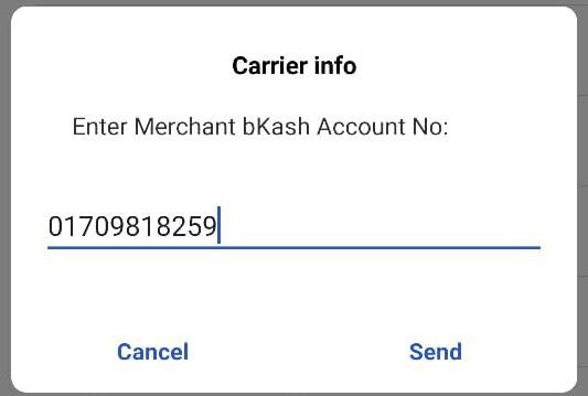 Merchant bkash Account No: 01709818259 টাইপ করুন