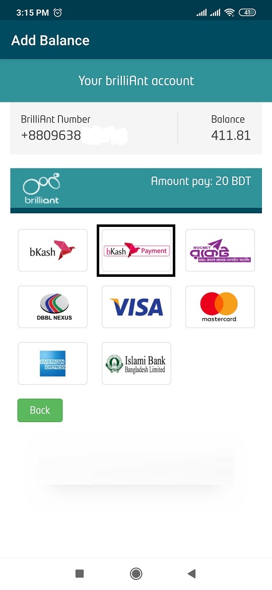বিকাশ পেমেন্ট অপশনটি সিলেক্ট করুন