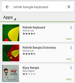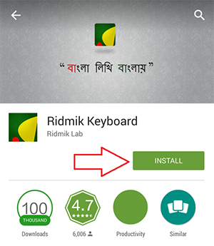 Open Play Store from android device & search for keyboard application for example: Ridmik Keyboard. Then install the application on device
