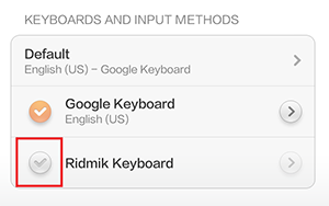 Go to Android device’s settings & tap on Language and input>Your installed Keyboard. For example we have shown Ridmik Keyboard